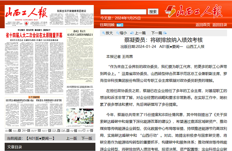 蔡凝委員:將碳排放納入績效考核 “作為來自工會界別的政協委員,我們要為職工代言、把更多的職工心聲帶到兩會上?!边@是省政協委員、山西轉型綜合改革示范區總工會兼職副主席、羅克佳華科技集團股份有限公司專職工會主席蔡凝對政協委員職責的理解。 了解更多